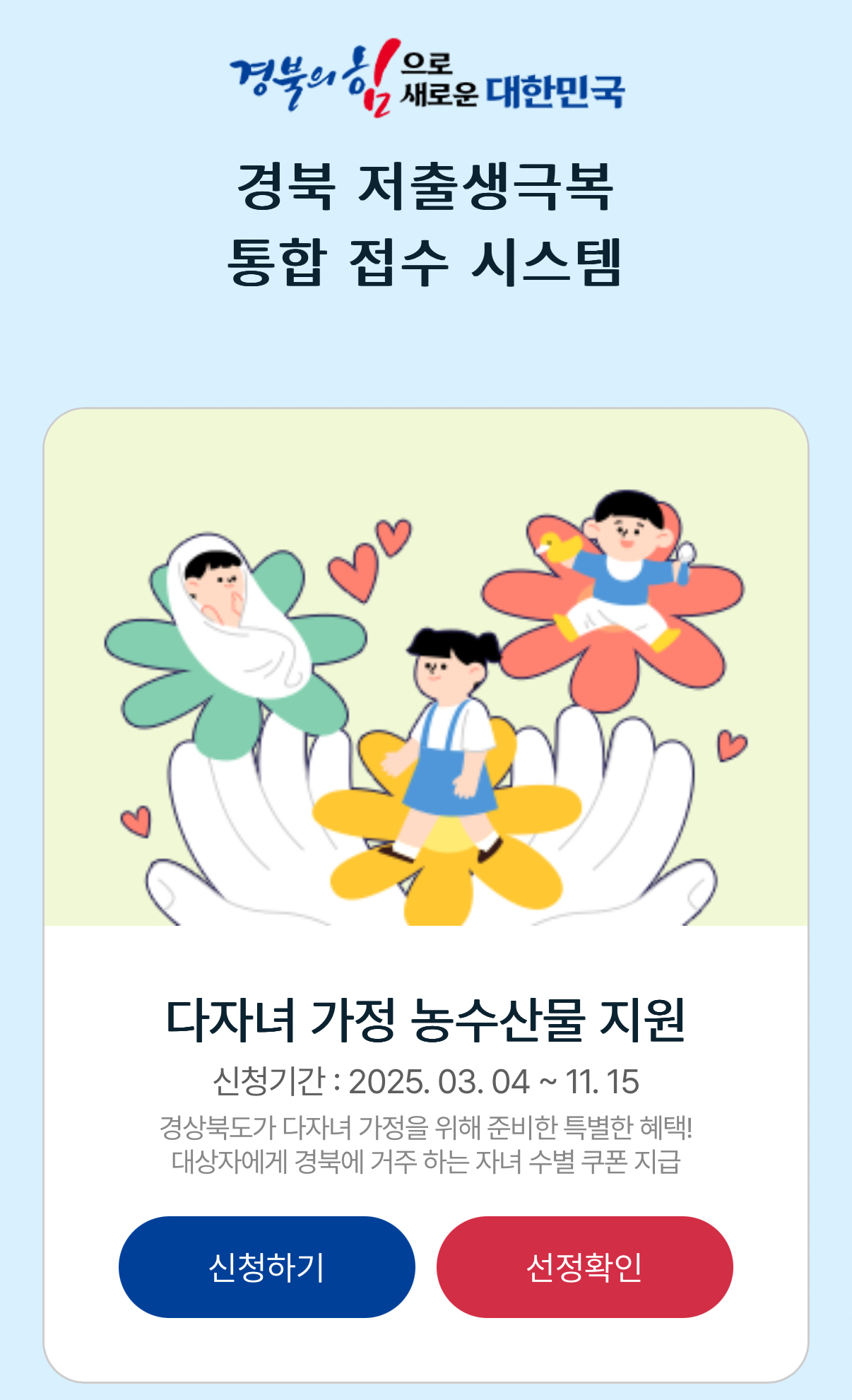 2025년 경북 다자녀 농수산물 지원사업 안내